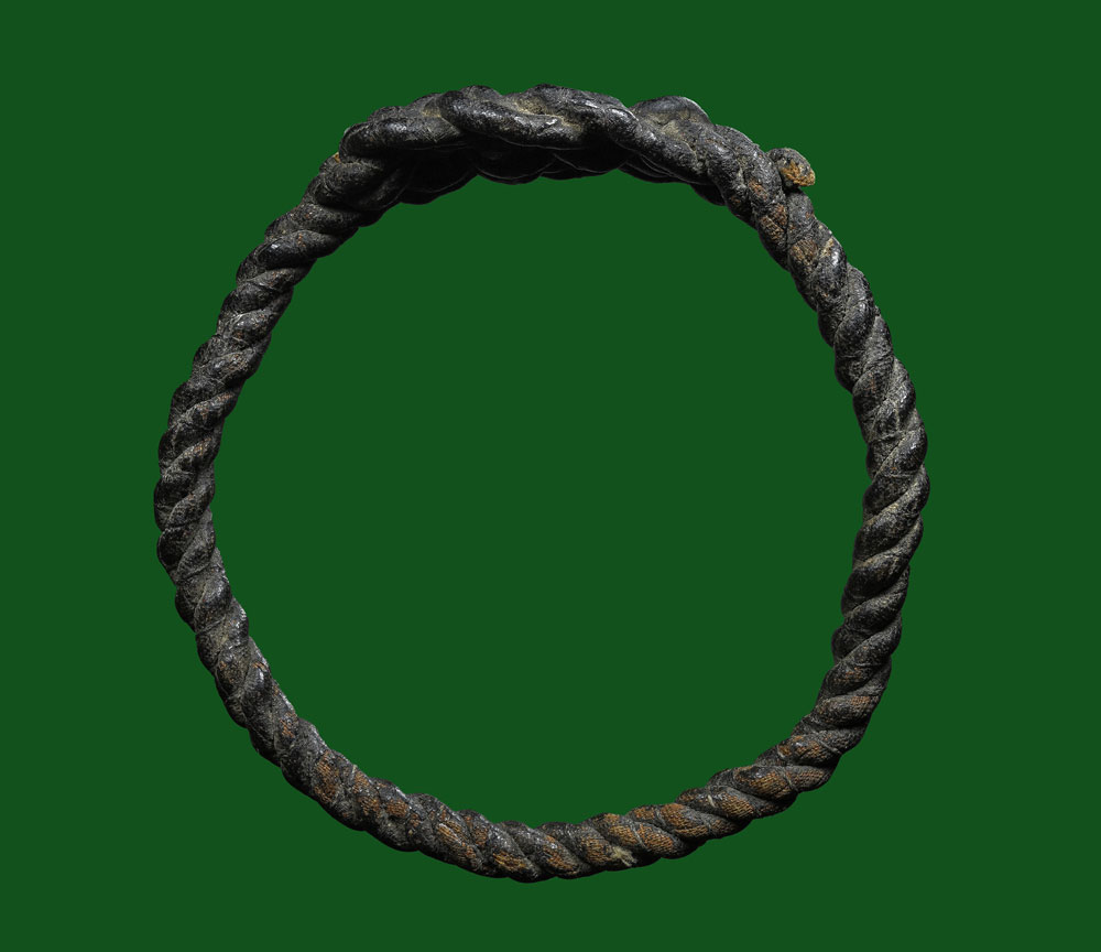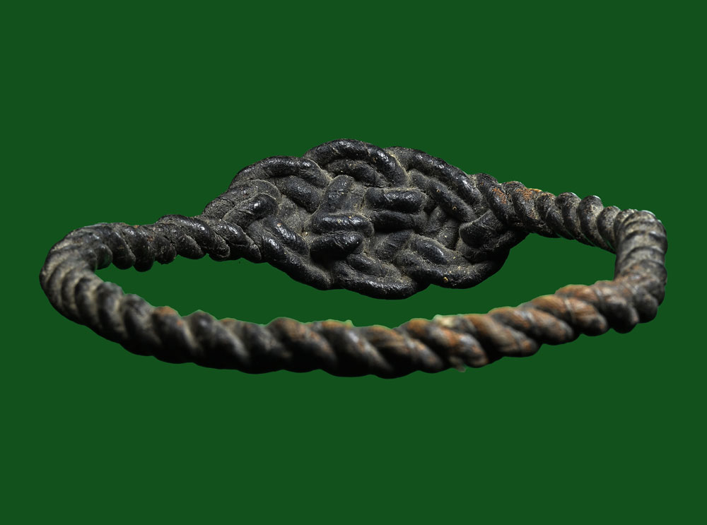 พิรอดแขนถักชุบรักขนาดเส้นผ่านศูนย์กลาง 8 ซ.ม.ขนาดหัวถักยาว 5 ซ.ม.หัวถักกว้าง 2.5 ซ.ม. หลวงปู่เผือก วัดกิ่งแก้ว สภาพสวยสมบูรณ์