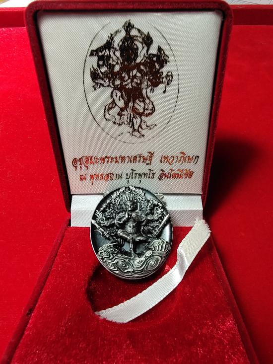 เหรียญพระธนบดีมหาเศรษฐีซัมภล เทวาภิเษกที่มหาเจดีย์ปุโรพุทโธ ประเทศอินโดนีเซีย เนื้อเงินรมดำ โค๊ด 327