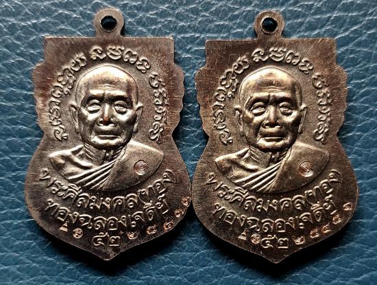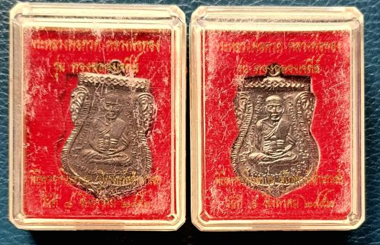 2 เหรียญ เสมาหัวโตอาจารย์ทอง รุ่นทองฉลองเจดีย์ เนื้อทองแดงรมดำ กล่องเดิม เคาะเดียว
