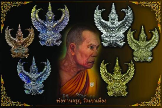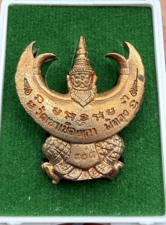 พญาครุฑรุ่นแรก (จันทร์เพ็ญ ๖๔) พ่อท่านจรูญ วัดเขาเมืองเก่า จ.พัทลุง เนื้อทองแดง หมายเลข ๓๐๕ (สร้าง ๕๖๔ ตน)
