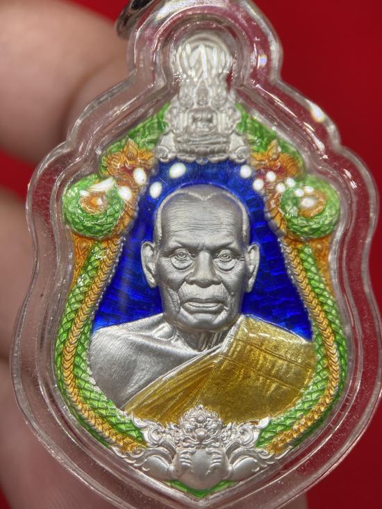 เหรียญรุ่น เจ้าสัว หลวงพ่อพัฒน์ วัดห้วยด้วน นครสวรรค์ (จัดสร้างโดย บอย ท่าพระจันทร์) เนื้อเงินลงยา 3 สีพื้นฟ้า เลข 573 เลี่ยมกรอบพร้อมใช้ พร้อมกล่องเดิม!!