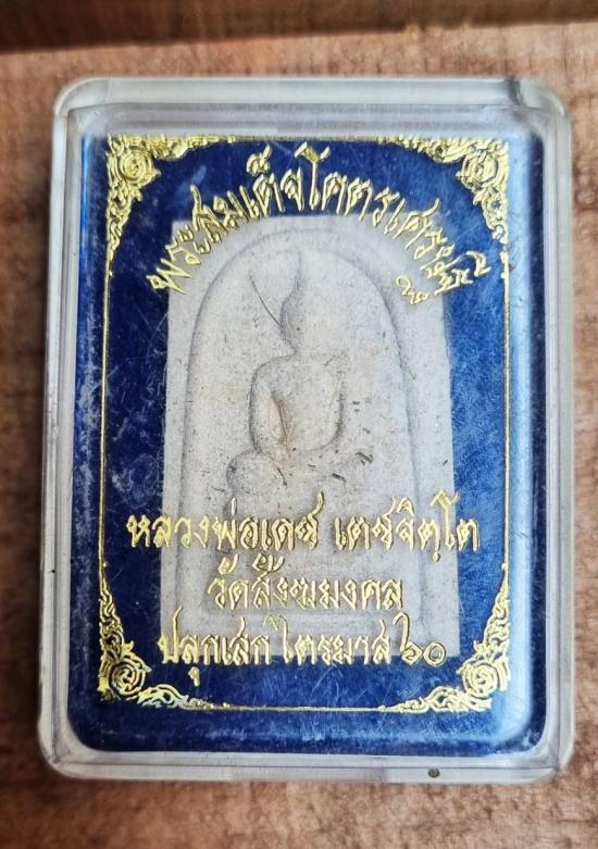 พระสมเด็จโภคทรัพย์ รุ่นปลุกเสกไตรมาส ปี 2560 หลวงพ่อเดช เตชจิตฺโต วัดสังฆมงคล หมายเลข "๓๓๔๗"