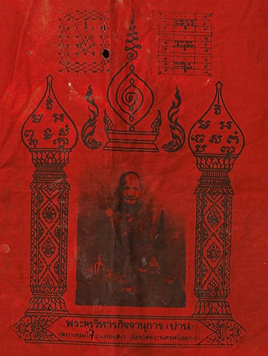 ผ้ายันต์ธงมหาพิชัยสงคราม ซึ่งเป็นยันต์ที่อยู่บนยอดธงออกรบสมัยโบราณ ตำราวิชานี้เป็นตำราพระร่วงที่หลวงพ่อเราสืบทอดมาเป็นท่านสุดท้าย..ถึงแม้ท่านอื่นนำไปทำผลมากที่สุดจะแค่ 10% เท่านั้น ท่านบอกไว้