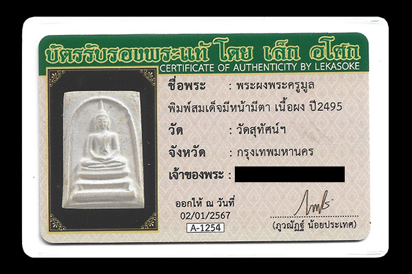 ให้พร้อมบัตรรับรองพระแท้โดยเล็ก อโศก