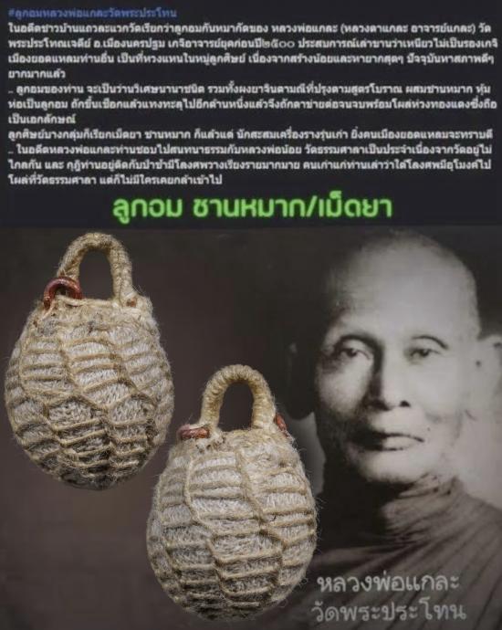 หนึ่งในตำนาเครื่องราง มาตรฐาน เมืองนครปฐม ในสนาม ส่วนใหญ่ จะเจอ แต่ลูก ที่ผ่านการใชั ยัยเยิน... ในอดีตชาวบ้านแถวละแวกวัดเรียกว่าลูกอมกันหมากัดของ หลวงพ่อแกละ (หลวงตาแกละ อาจารย์แกละ) วัดพระประโทณเจดีย์ อ.เมืองนครปฐม เกจิอาจารย์ยุคก่อนปี๒๕๐๐ ประสบการณ์เล่าขานว่าเหนียวไม่เป็นรองเกจิเมืองยอดแหลมท่านอื่น เป็นที่หวงแหนในหมู่ลูกศิษย์ เนื่องจากสร้างน้อยและหายากสุดๆ ปัจจุบันหาสภาพดีๆยากมากแล้ว