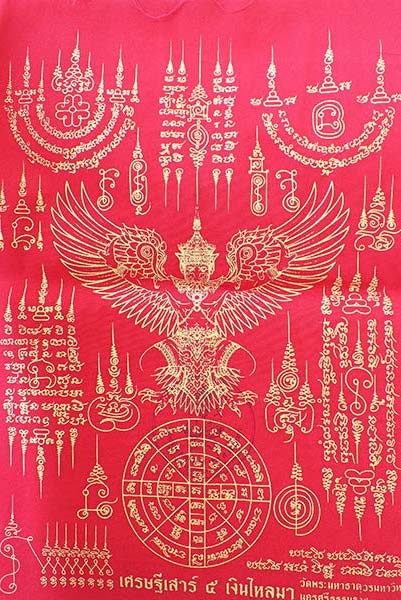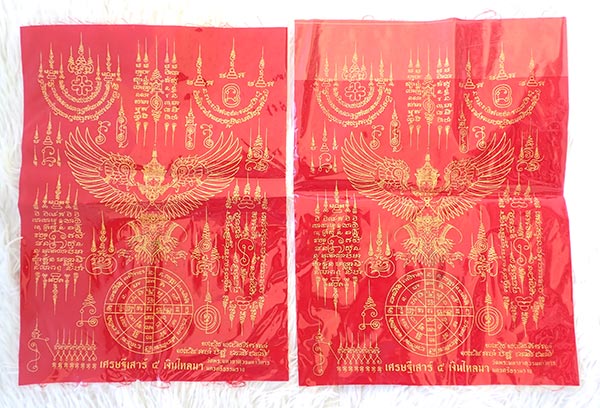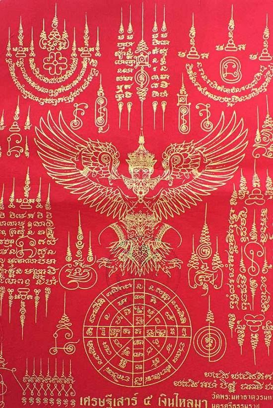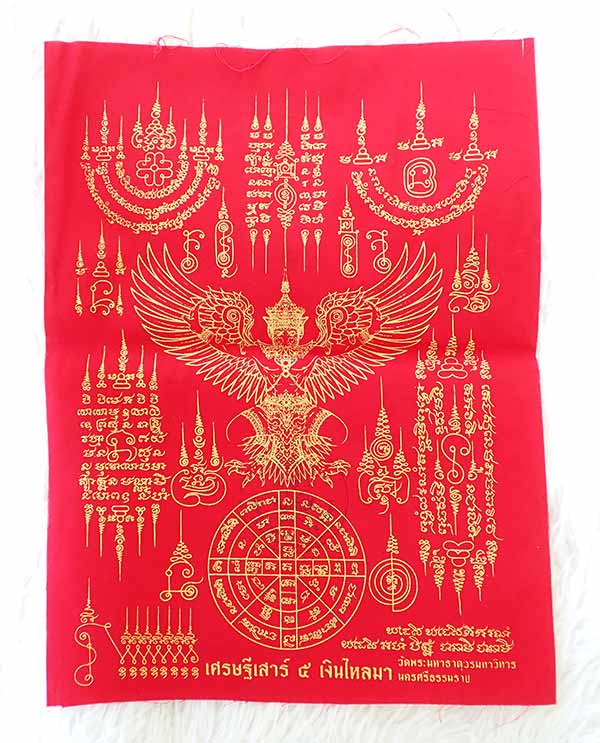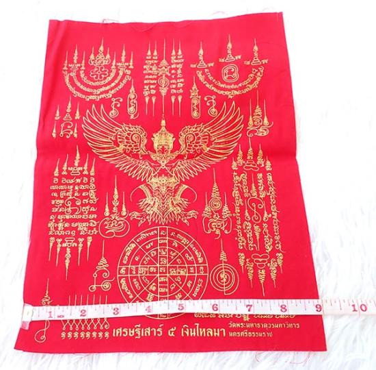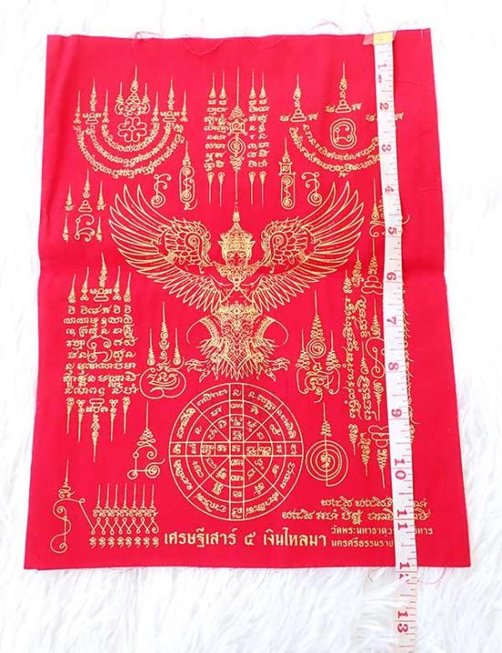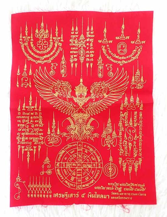 $เคาะแรกเบาวัดใจทีเดียว 2 ผืนค่ะ ผ้ายันต์พญาครุฑ รุ่น เศรษฐีเสาร์ ๕ เงินไหลมา วัดพระมหาธาตุมหาวรวิหาร จ.นครศรีธรรมราช ปี ๒๕๖๗ ผืนเล็ก สีแดง พิมพ์ทอง ขนาดประมาณ 11.5 x 8.5 นิ้ว ค่ะ$