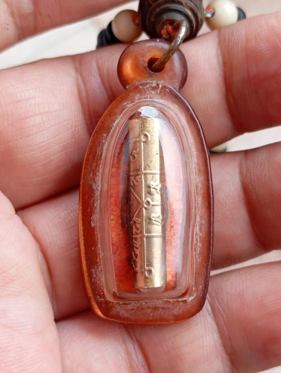 พระสิวลีมหาลาภ ปี 2511 เนื้อผงผสมผงว่านสบู่เลือด ( เนื้อออกโทนสีส้มแสด ) ด้านหลังติดตะกรุดมหาบุรุษ 8 จำพวก สภาพสวยเดิมๆ เลี่ยมเก่าพร้อมใช้ อ.ชุม ไชยคีรี ปลุกเสก