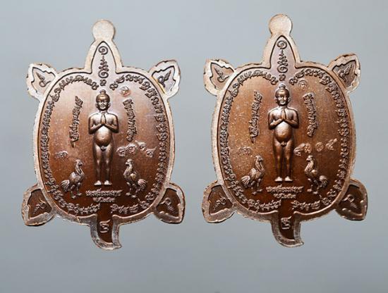 เหรียญพญาเต่าเรือน เลื่อนยศปลดหนี้ ไอ้ไข่ กายสิทธิ์ 63 หลวงปู่ทวด หลังตาไข่ เนื้อทองแดงมันปู 2 เหรียญ เลข 4324+4315