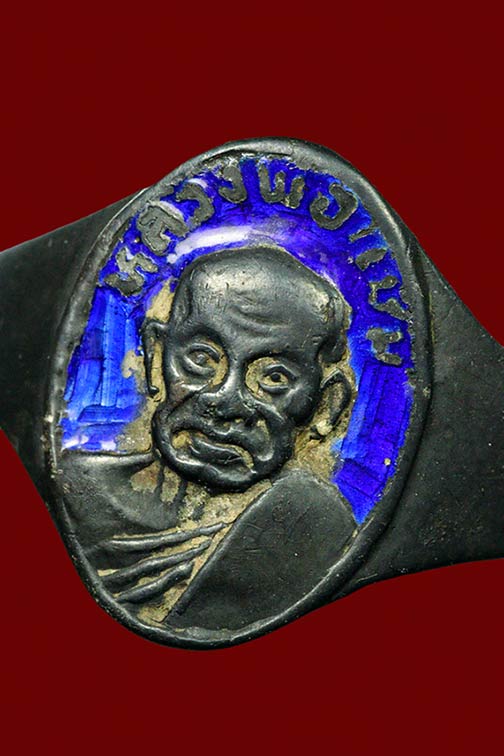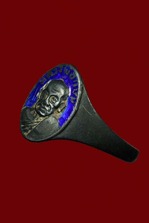 แหวน หัวเม็ดแตง (เนื้อเงิน ลงยาสีน้ำเงิน ) หลวงพ่อแช่ม วัดฉลอง จ.ภูเก็ต ปี 24กว่า สภาพสวยเดิม