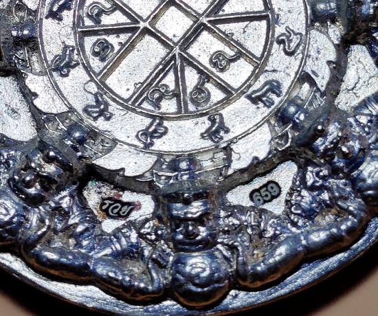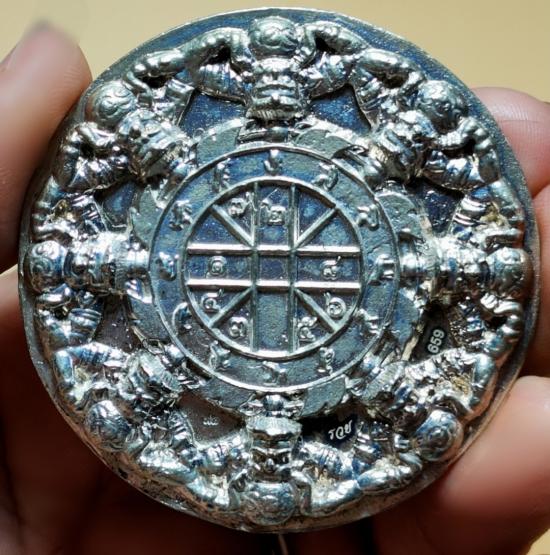 เหรียญบาทน้ำมนต์ เนื้อเงิน รุ่นตามรอยพ่อ หนัก65กรัม หมายเลข659