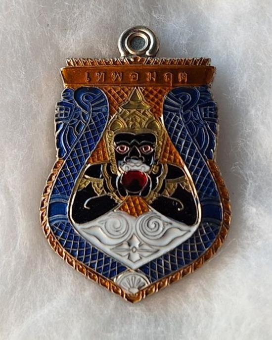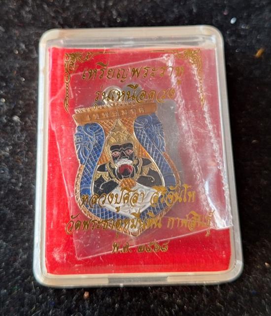 เหรียญพระราหูอมจันทร์ รุ่นเหนือดวง เนื้ออัลปาก้าลงยา ตอกเลข+ตอกโค๊ต พร้อมกล่อง
