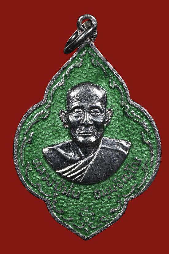 เหรียญพุ่มข้าวบิณฑ์ เนื้อเงินลงยา หลวงปู่ม่น วัดเนินตามาก ชลบุรี พ.ศ. 2534