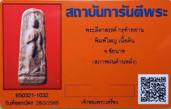 พระสรรค์ยืนลีลา กรุวัดท้ายย่าน พิมพ์ใหญ่ เนื้อดิน จ.ชัยนาท พร้อมบัตรรับรองจากจีพระ
