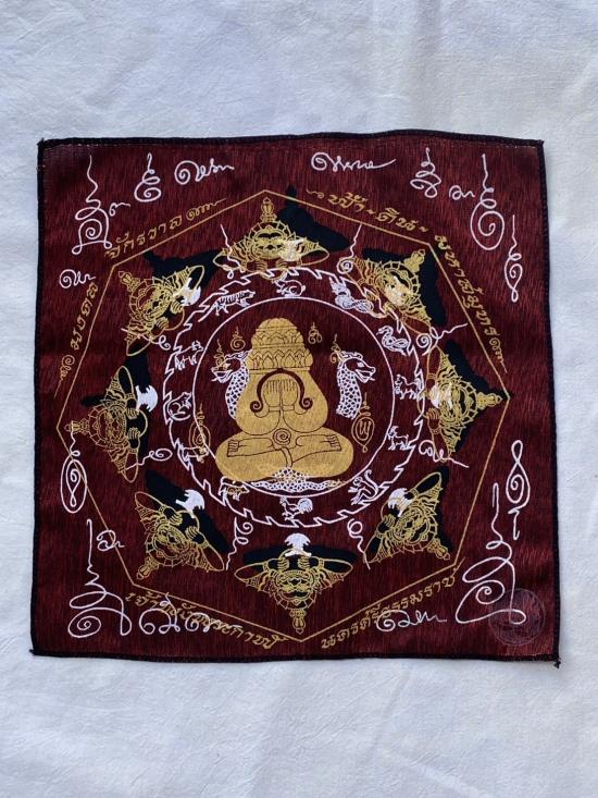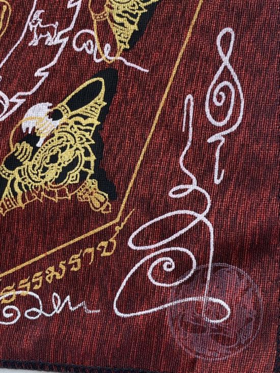 เคาะเดียวแดง ผ้ายันต์ พังพระกาฬ เสริมดวง อุดมมงคล รุ่นมงคลจักวาล ขนาด30/30ซม มีตราประทับ สีแดง