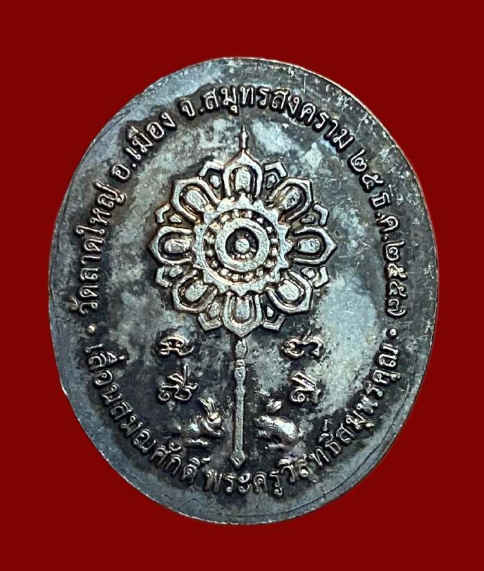 เหรียญเลื่อนสมณศักดิ์ เนื้อเงิน หลวงพ่อบ้านแหลม วัดลาดใหญ่ จ.สมุทรสงคราม ปี 2557