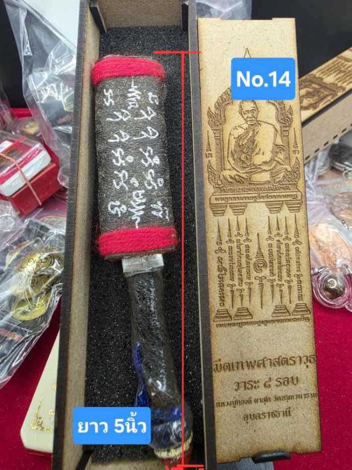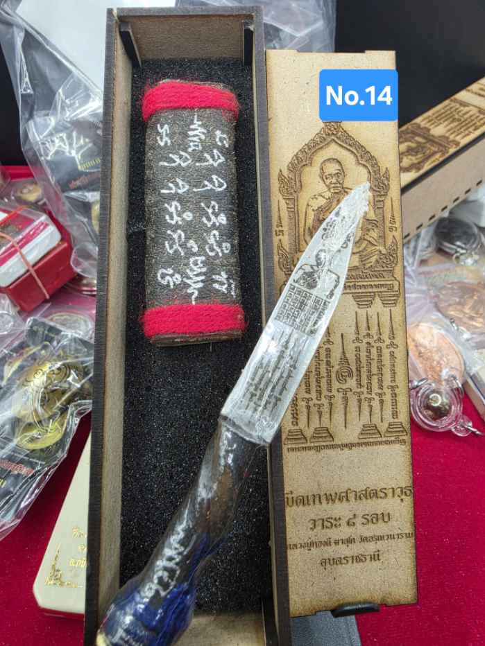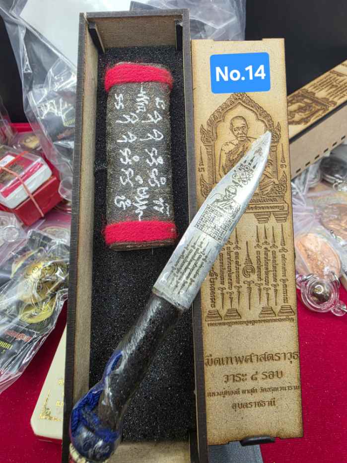 มีดหมอหนังช้างแท้ 2หน้า ลาย หลวงปู่ทองดี+สำเร็จลุน No.14 วาระ 8 รอบหลวงปู่ทองดี จังหวัดอุบลราชธานี พร้อมกล่องไม้เดิมๆ
