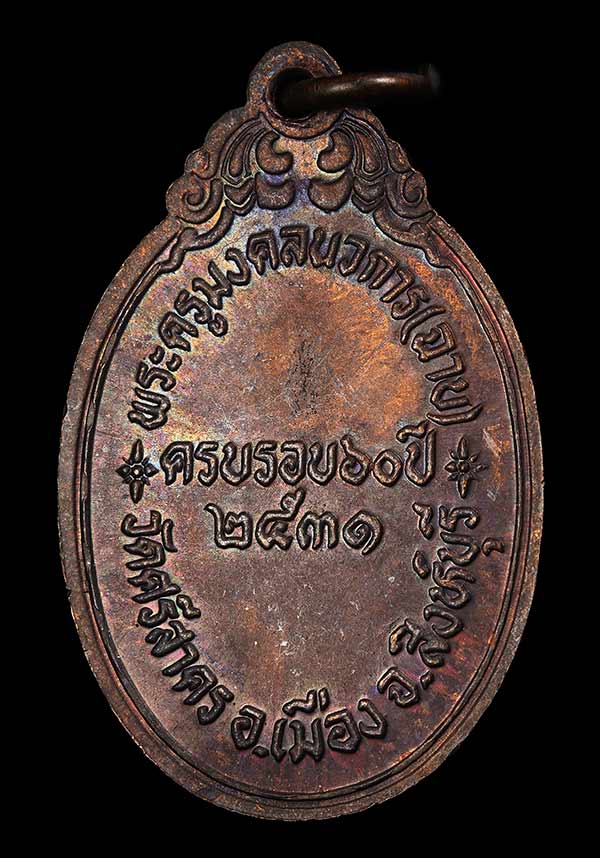 *วัดใจ* เหรียญรูปไข่ หลวงพ่อฉาบ วัดศรีสาคร รุ่น3 เนื้อทองแดง ปี2531จ.สิงห์บุรี
