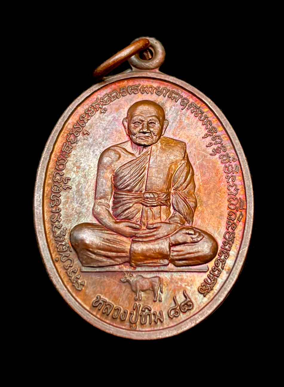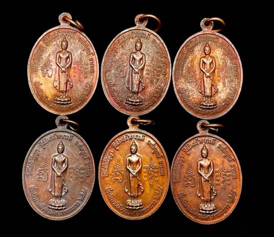 วัดใจ 6 เหรียญ หลวงปู่ทิม วัดพระขาว จ.อยุธยา เหรียญที่ระลึกงานฝังลูกนิมิต ปี 2544 หลังพระพุทธปางถวายเนตร พระประจำวันอาทิตย์ เนื้อทองแดง