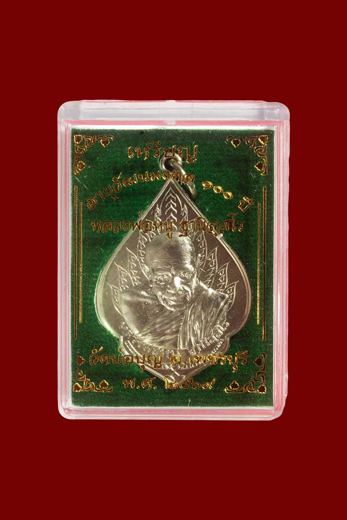 เหรียญเก้ายอดมงคลอายุวัฒนะ 100 ปี หลวงพ่อหนู วัดบ่อบุญ เนื้ออัลปาก้า พร้อมกล่อง เหรียญเนื้อนี้เป็นเหรียญแจก