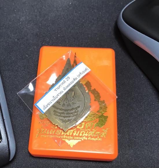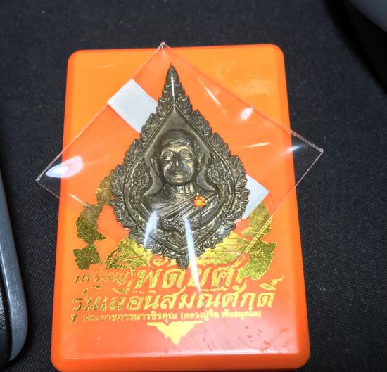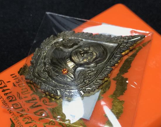 เคาะเดียว.....เหรียญพัดยศ รุ่นเลื่อนสมณศักดิ์ (หลวงปู่จื่อ วัดเขาตาเงาะ จ.ชัยภูมิ) เนื้อชนวนโบราณ ฝังพลอยสีส้ม พิมพ์ครึ่งองค์ กล่องเดิม