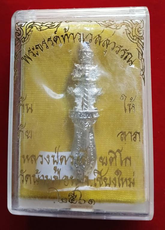 พระขรรค์ท้าวเวสสุวรรณ ปี 2561 เนื้อกะไหล่เงิน หมายเลข 268 หลวงปู่ดวงดี ยติโก วัดบ้านฟ่อน อ.หางดง จ.เชียงใหม่