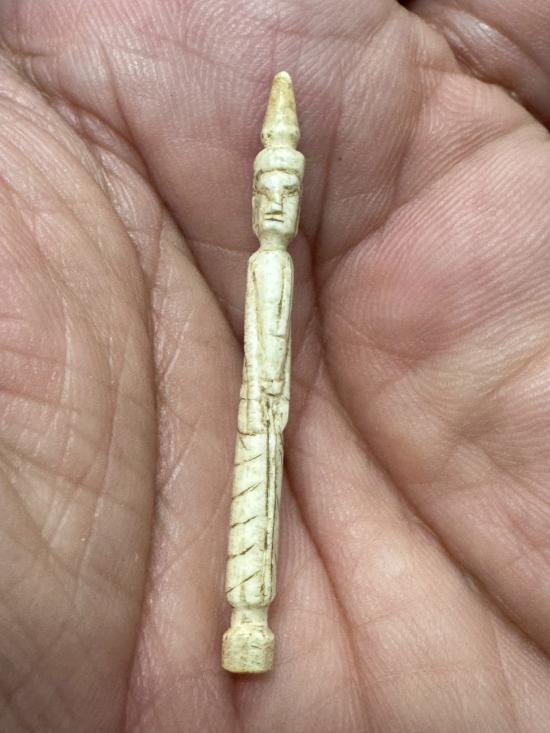 งาแกะเก่า พระพุทธยืน พืมพ์ลักษณะเหมือนไม้จิ้มฟัน ยาว 4.2 เซ็นติเมตร