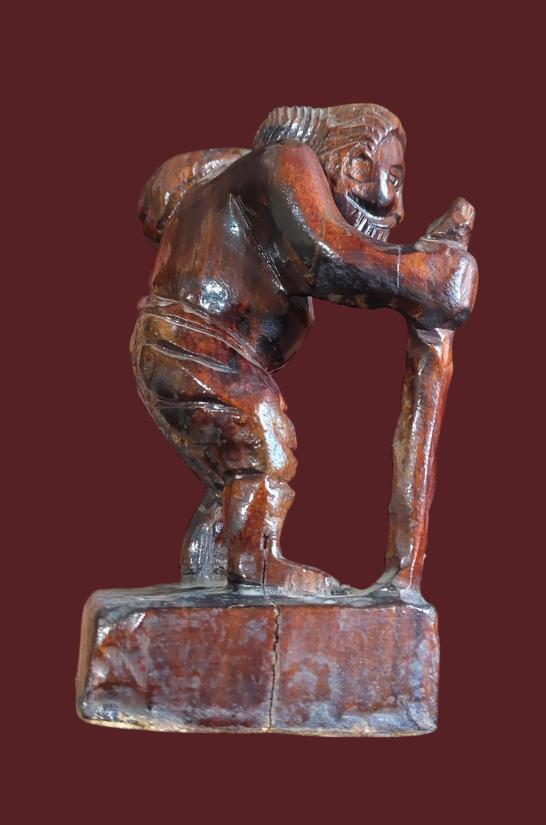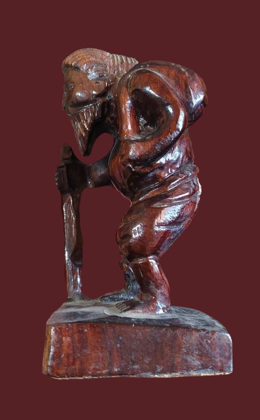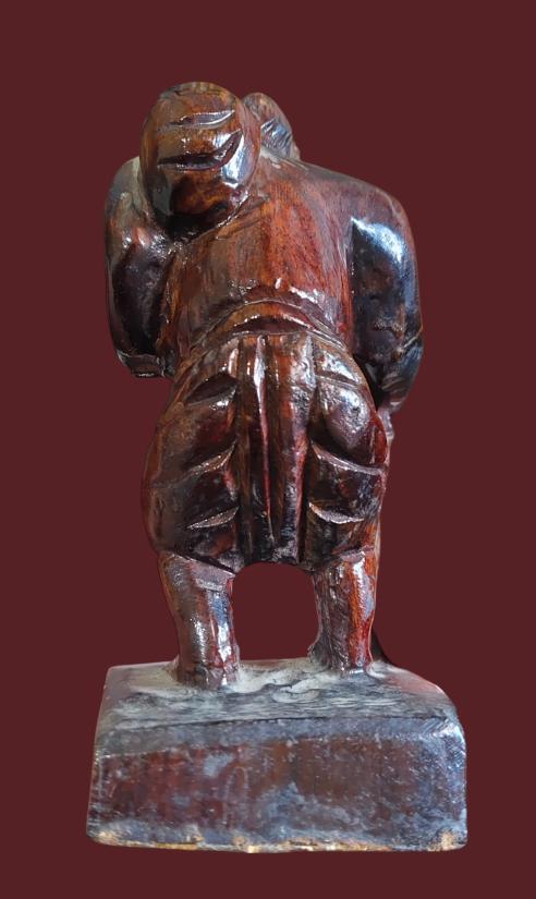 ชูชกไม้แกะขนาดบูชา ใต้ฐานมีรอยแผ่นยันต์เก่า