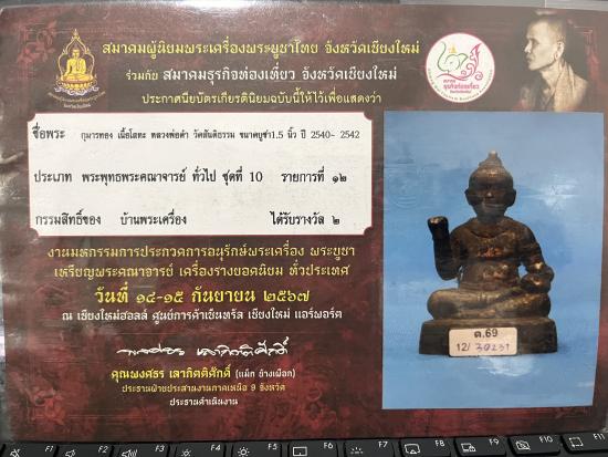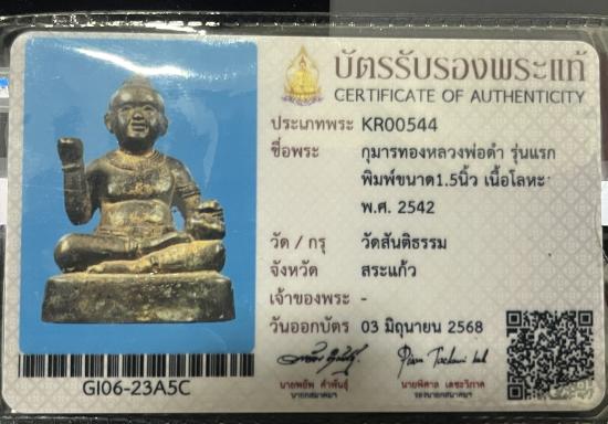 กุมารทองหลวงพ่อดำ รุ่นแรก ขนาด1.5นิ้ว เนื้อโลหะ ปี2542 วัดสันติธรรม จ.สระแก้ว พร้อมบัตรรับรองสมาคมฯ และประกาศนียบัตรฯ