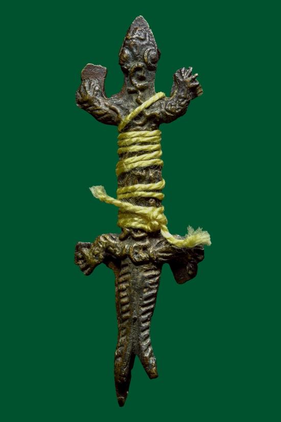 จิ้งจกหลวงพ่อบุญชู วัดหนองโรง จ.กาญจนบุรี เนื้อทองผสมหล่อโบราณ แบบเป็นคู่ตัวผู้ - ตัวเมีย