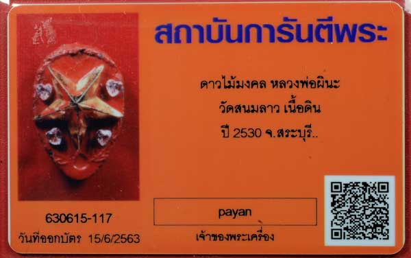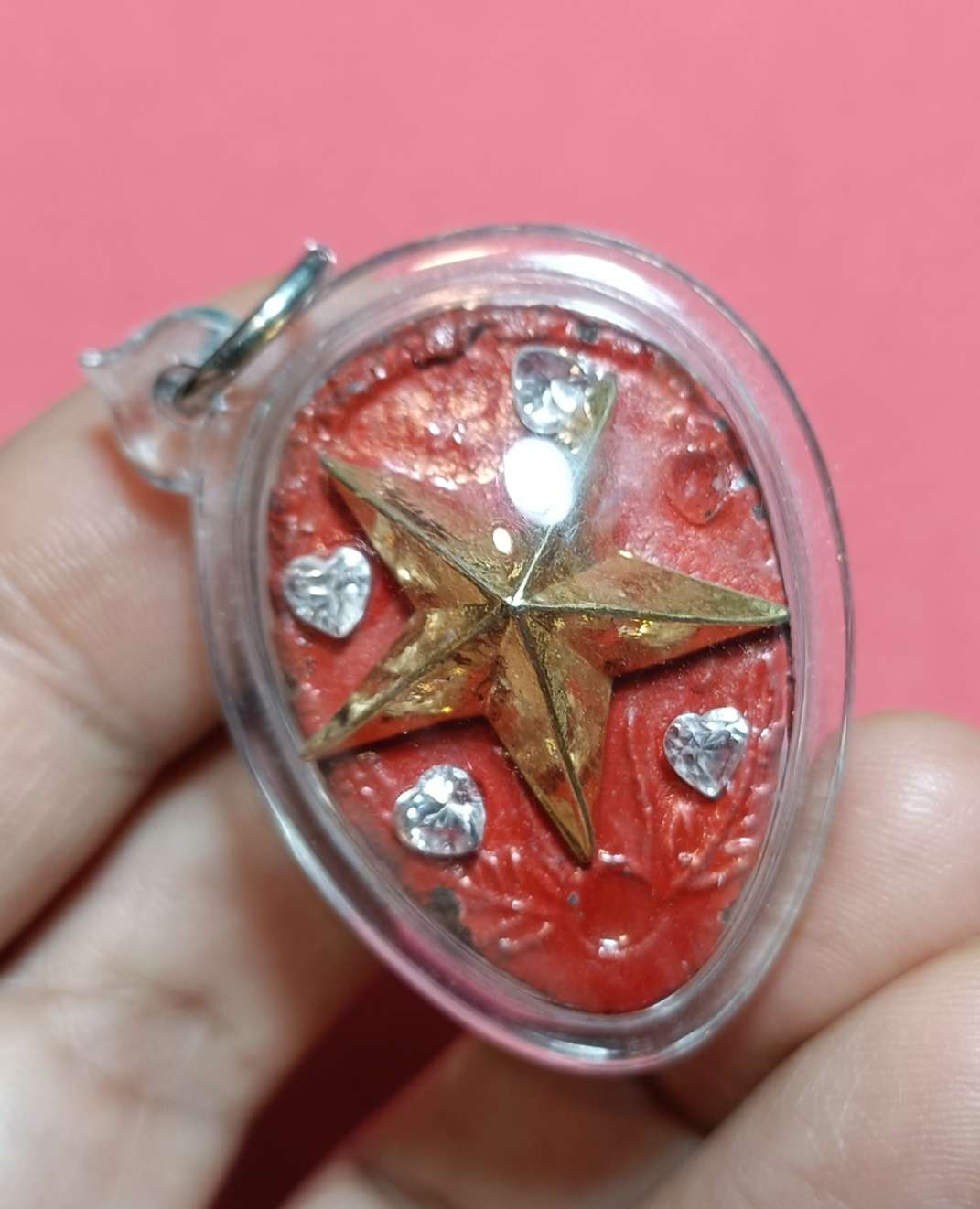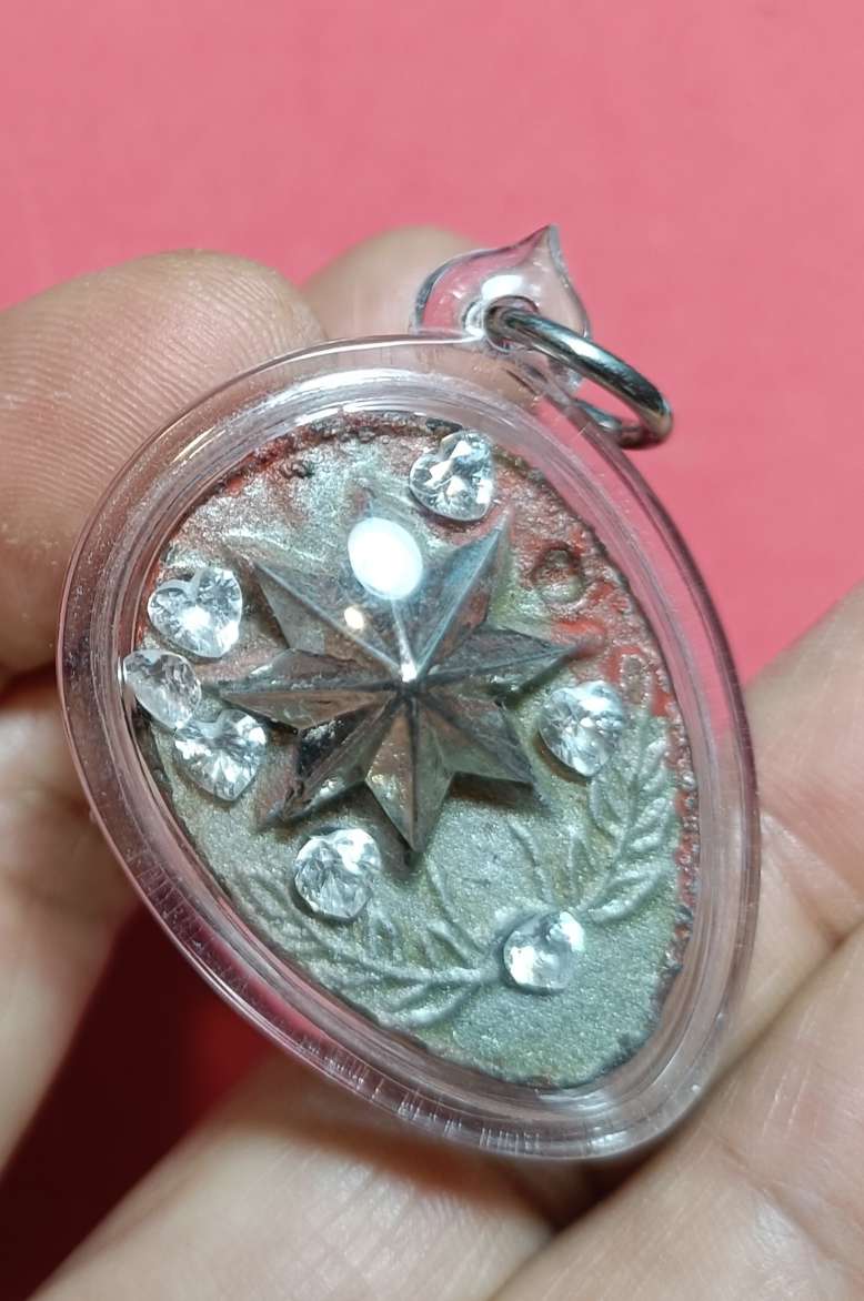 วัดใจ ดาวแม่น้ำหอม ดาวไม้มงคล หลวงพ่อ ผินะ วัดสนมลาว สีแดง(นิยม หายาก) พิเศษครอบดาวเลื่อน ดีด้านเลื่อนตำแหน่ง เลื่อนฐานะให้สูงส่งขึ้นกว่าเดิม ฝังพลอยเสก เมตตาค้าขายแรงๆ อธิฐานได้ ตามใจปรารถนา มีเงินใช้ไม่ขาดมือ พร้อมบัตรจีพระ ปัจจุบันนำเลี่ยมพลาสติกกันน้ำไว้พร้อมใช้ และมีเพชรที่ประดับไว้หลุดทั้ง 2 ด้านแต่เป็นเอกลักษณ์ดีครับคล้ายๆกับพระกริ่งเพชรจะวิ่งไปวิ่งมาตอนเคลื่อนไหว
