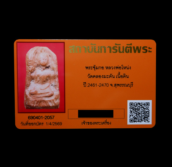 พระซุ้มกอ หลวงพ่อโหน่ง วัดคลองมะดัน จ.สุพรรณบุรี เนื้อดิน พิมพ์นิยมสุด สวยแชมป์ + บัตรรับรอง G-PRA