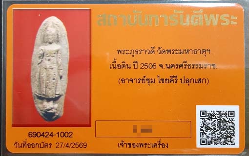 พระภูธราวดี(ภูทราวดี)เนื้อดิน ปี2506 วัดมหาธาตุฯ จ.นครศรีธรรมราช พร้อมบัตรรับรองครับ