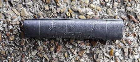 ตะกรุดยันต์ครูรุ่นแรก พระอาจารย์จิ วัดหนองหว้า จ.เพชรบุรี ปี 52 เนื้อตะกั่ว ขนาด 1.5 นิ้ว..เคาะเดียว