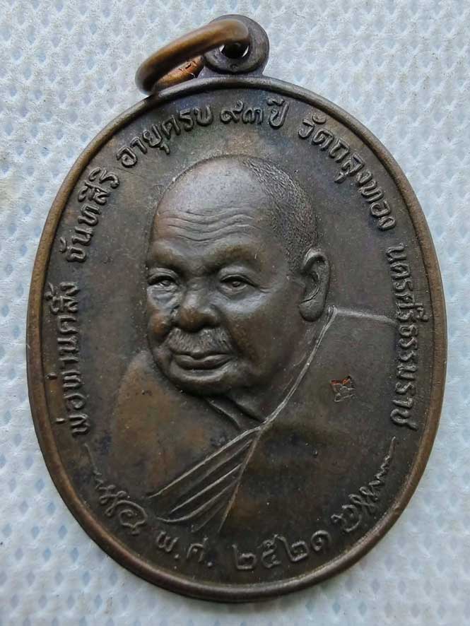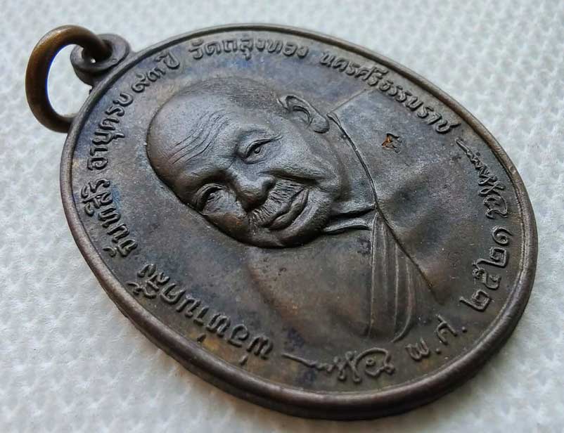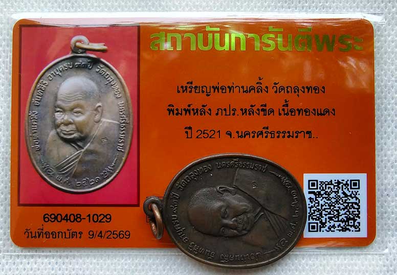 เหรียญพ่อท่านคลิ้ง วัดถลุงทอง พิมพ์หลัง ภปร. เนื้อทองแดง ปี 2521 จ.นครศรีธรรมราช พร้อมบัตรรับรอง