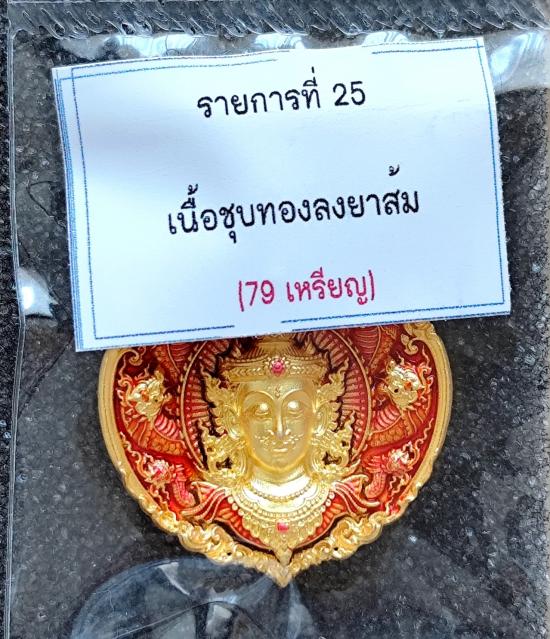 เหรียญหล่อพุทธศิลป์ จตุคาม รุ่นดวงดี159 เนื้อชุบทองลงยาส้ม No.๓๓ พร้อมกล่องเดิม ขนาดเหรียญสูง 2.8 cm.