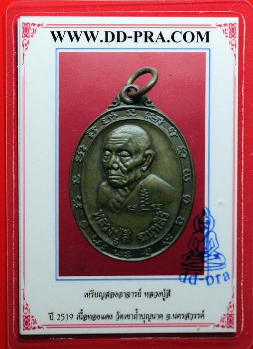 เหรียญ สองอาจารย์ " หลวงปู่สี วัดถ้ำเขาบุญนาค " เนื้อทองแดง พร้อมบัตรรับรองเวปเพื่อนบ้าน