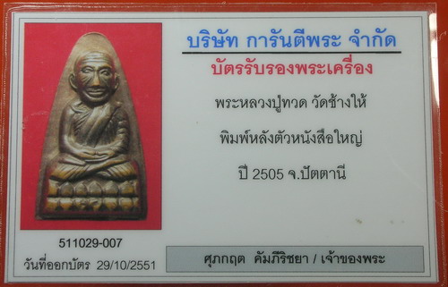 | รายละเอียด | หลวงปู่ทวดพิมพ์หลังตัวหนังสือใหญ่ปี 05(บล็อกเสาอากาศ)