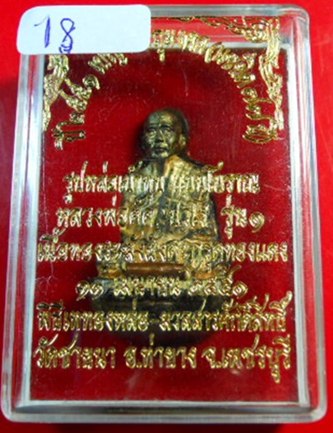 | ชื่อพระเครื่อง | รูปหล่อเบ้าทุบ รุ่นแรก หลวงพ่อตัด วัดชายนา จ.เพชรบุรี ปี2551 เนื้อทองระฆัง เลข 18 ติดตะกรุดทองแดง |