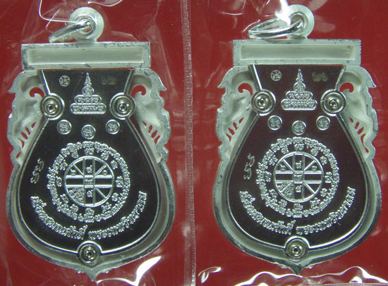 เหรียญเสมาฉลุเลื่อนสมณศักดิ์ เงิน ลงยาแดง&น้ำเงิน เคาะเดียว