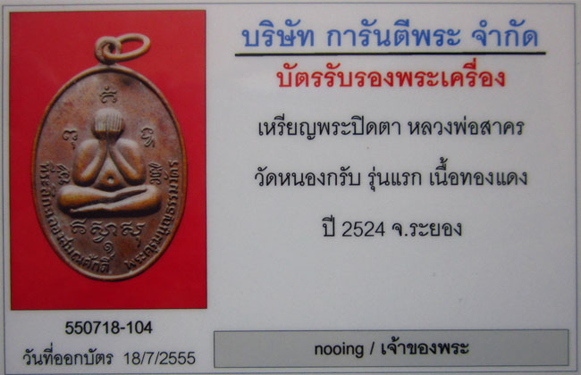 4,900.- สวยแชมป์ !!! เหรียญพระปิดตา รุ่นแรก หลวงพ่อสาคร วัดหนองกรับ ปี 2524 สภาพสวยผิวสวย เก็บเดิมสุด ๆ พร้อมบัตรรับรอง g-pra (A2)