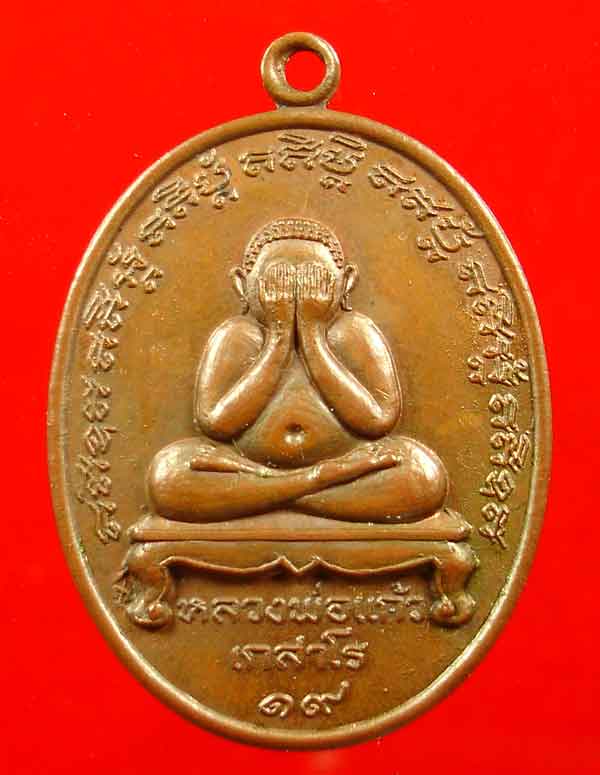 เหรียญพระปิดตา หลวงพ่อแก้ว วัดระหารไร่ เนื้อทองแดง ปี.2519 ตอกโค๊ต 95 มีจาร 3 จุด 3 โค๊ต สภาพสวยยังมีผิวไฟ พร้อมบัตร