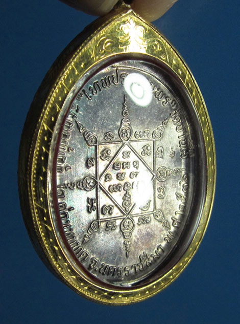 <001>เหรียญรูปไข่เทพประทานพร หลวงพ่อคูณ ปี36 เนื้อเงิน สภาพสวยพร้อมเลี่ยมทองยกซุ้ม(มีบัตรรับรอง)