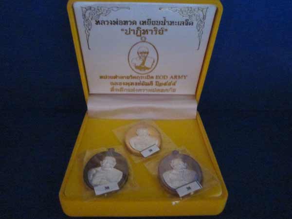 เหรียญหลวงพ่อทวด ปาฏิหาริย์ Eod ชุดกรรมการหน้ากากเงิน 1 ชุด 3 เหรียญ สร้าง 99 ชุด หมายเลข 38