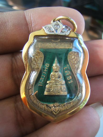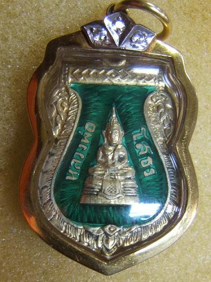 /// เหรียญเสมาลงยาสีเขียว หลวงพ่อโสธร 09 สวยมากๆ +ขอบทองฝังเพชร พร้อมใช้ครับ