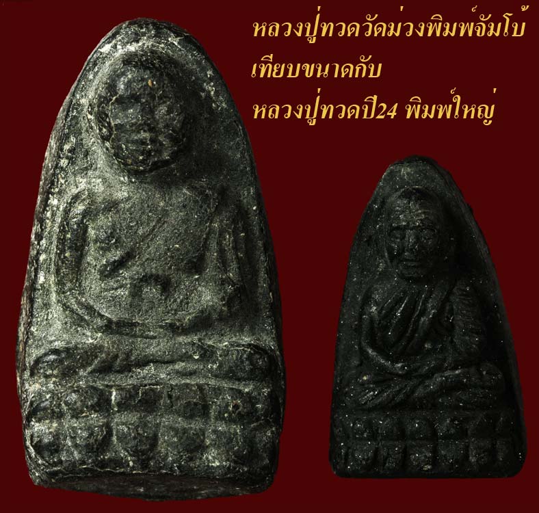 | เป็นหลวงปู่ทวดอีกพิมพ์ที่อาจารย์ทิมวัดช้างให้มาร่วมประกอบพิธี(เป็นประธาน) เนื้อว่านหลวงปู่ทวดปี97 ก็เอาขึ้นมาผสมด้วยครับ และพิมพ์นี้เป็นพิมพ์ที่ใหญ่ที่สุดในจำนวนหลวงปู่ทวดที่อาจารย์ทิมสร้างทุกวัด และพิมพ์จัมโบนี่แหละที่อาจารย์ทิมร่วมกดพิมพ์ด้วยในช่วงก่อนเข้าพรรษาปี05 และพิมพ์ใหญ่กับพิมพ์เล็กเป็นพระภิกษุสามเณรและกรรมการวัด ช่วยกันกดพิมพ์ในระหว่างพรรษา และทำการปลุกเสกปลายปี05โดยมีเกจิชื่อดังหลายท่าน อาทิเช่น พระอาจารย์ทิม วัดช้างไห้ ,ลพ.เงิน วัดดอนยายหอม,ลพ.นอ วัดกลางท่าเรือ ,ลป.เขียน วัดถ้ำขุนเณร ,ลพ.เต๋ วัดสามง่าม,ลป.นาค วัดระฆัง,ลพ.จง วัดหน้าต่างนอก,ลพ.ทบ วัดพระพุทธบาทเขาย้อย ฯลฯ*****บางข้อมูลบอกว่าพระพิมพ์นี้อาจารย์ทิมได้ทำแบบและกดพิมพ์เองที่วัดช้างให้แล้วนำมาเข้าพิธีที่วัดม่วงในปี06 แล้วนำมาแจกจ่ายให้กรรมการ และเจ้าอาวาส วัดม่วง เป็นพระสายหลวงปู่ทวดที่หายากอีกพิมพ์หนึ่ง ****หายไปจากสนามเลยครับ**************องค์นี้เคลียร์ครับ...ติดรางวัลมา 2 งาน และมีบัตรรับรอง G-Pra ชัดเจนและแท้ทุกสนามครับ |