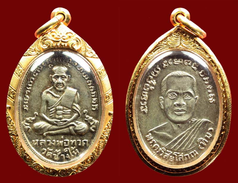 เหรียญหลวงปู่ทวด รุ่นสี่ ปี2505 พิมพ์สิบขีด นิยมสุดของเหรียญรุ่นสี่ สภาพสวยมาก ผิวเดิมสุด คราบเดิมๆ กะหลั่ยเงินหมองๆ ถ้าล้างเงาวับแน่นอน องค์นี้ไม่ได้บิ้ว ไม่ได้ล้าง เลี่ยมทองหนาอย่างดี รูปที่ลงเป็นรูปแรกจะเห็นกะไหล่เงินสะท้อนแสงเงาวับ เดิมๆ