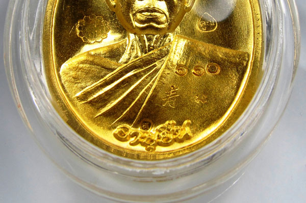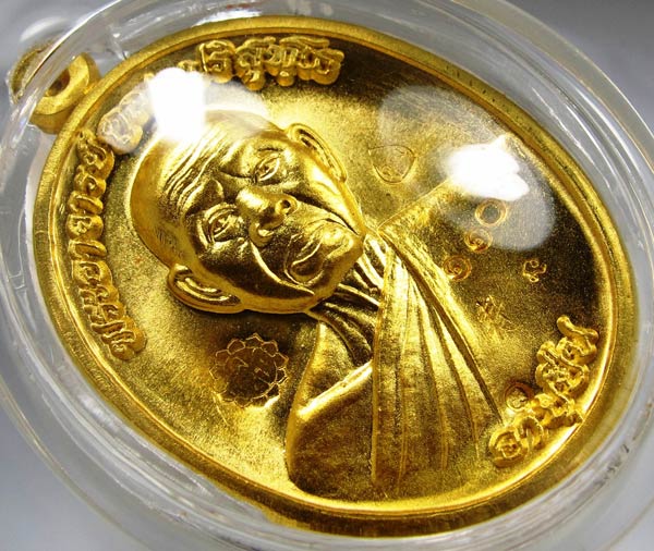 ***** อายุยืนครึ่งองค์ หลังยันต์ ทองคำ ***** เนื้อทองคำ หมายเลข 110 หนึ่งใน 199 เหรียญ แถมมีเลขเก้าพิเศษด้วยครับ