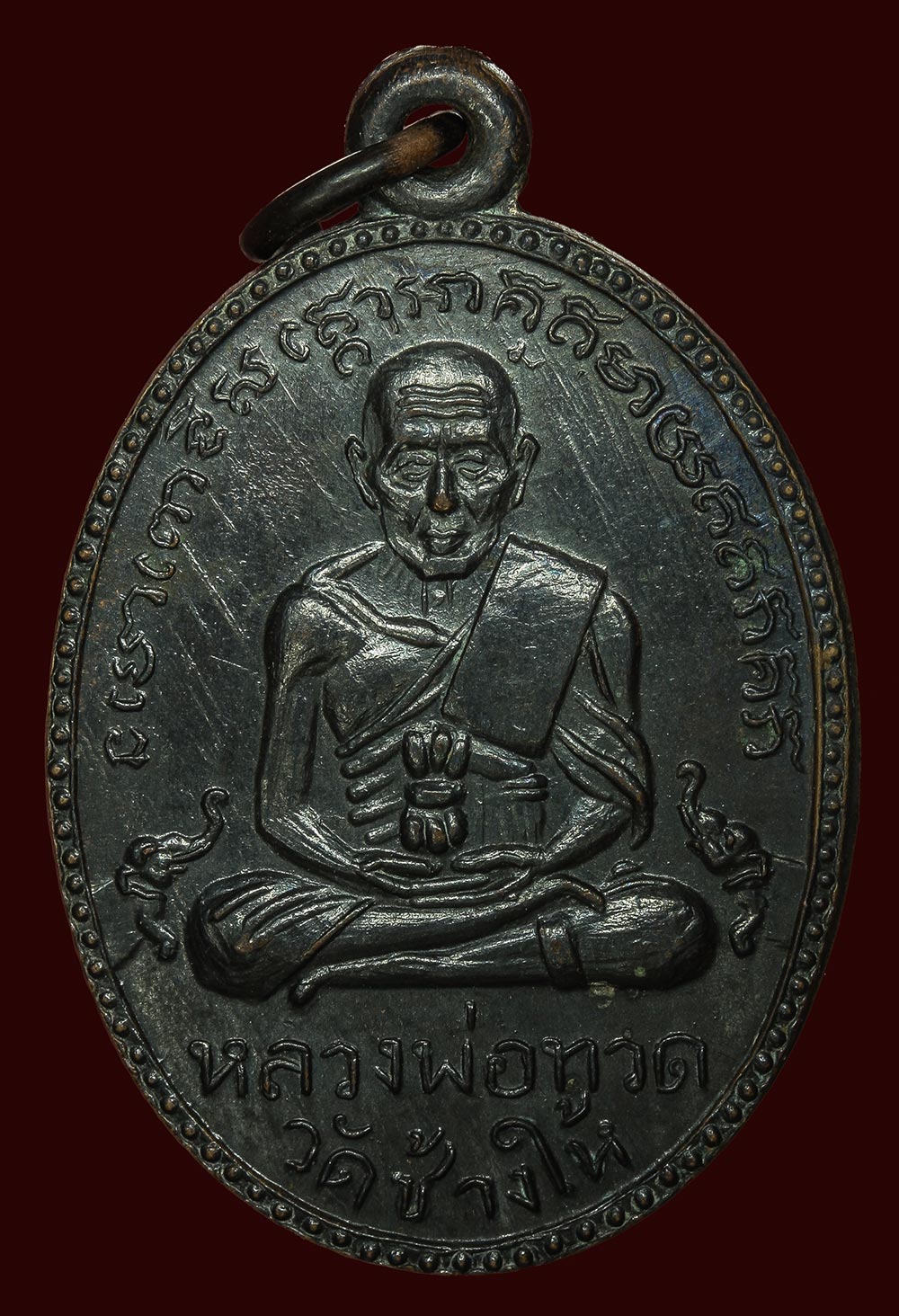 เหรียญหลวงปู่ทวด รุ่นสอง ปี2502 พิมพ์ไข่ปลาใหญ่ บล็อคสายฝน สภาพสวยมาก รมดำเดิมๆ แห้งๆ ปรอทซึมๆ จมูกสวยๆ