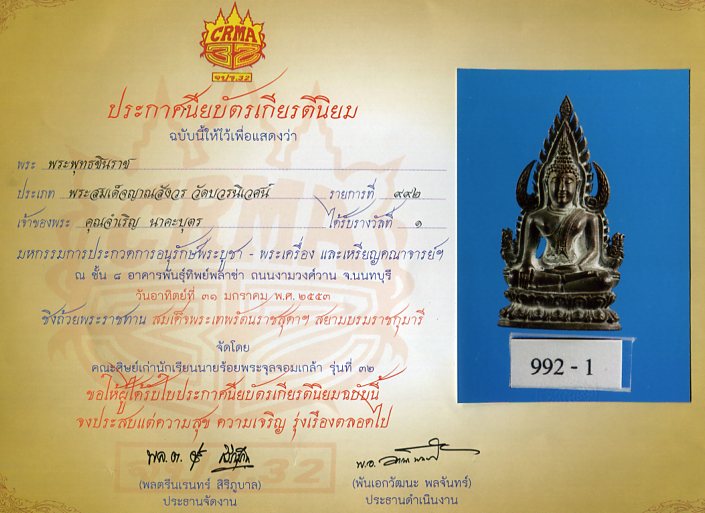 พระชินราชเนื้อโลหะสมเด็จญาณสังวรองค์แชมป์ |