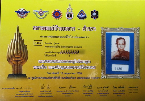 | สร้างขึ้นเมื่อปี 2519 ทั้งพิมพ์ที่ 1 และพิมพ์ที่ 2 จำนวนรวมกัน 1,000 องค์ มีทั้งขนาดใหญ่ และเล็ก นิยมในองค์ที่มีผงด้านหลังพร้อมทั้งตอกโค้ดยันต์นะ และ"ต" ในดอกจัน 16 แฉกกำกับไว้....จัดว่าเป็นล็อกเกตที่หายาก ........องค์ที่นำลงในชมรม สภาพสวยสมบูรณ์ ไม่มีอุดซ่อม ติดรางวัลที่ 1 งานใหญ่ มีให้พร้อมใบประกาศ |